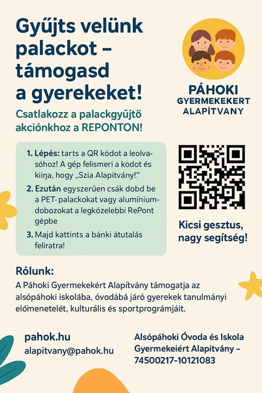 A Páhoki Gyermekekért Alapítvány továbbra is elkötelezetten dolgozik azon, hogy minél több élményt, támogatást és örömet nyújtson a helyi óvodába és iskolába járó gyerekeknek.